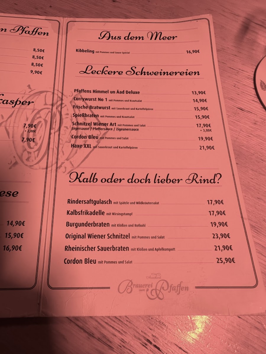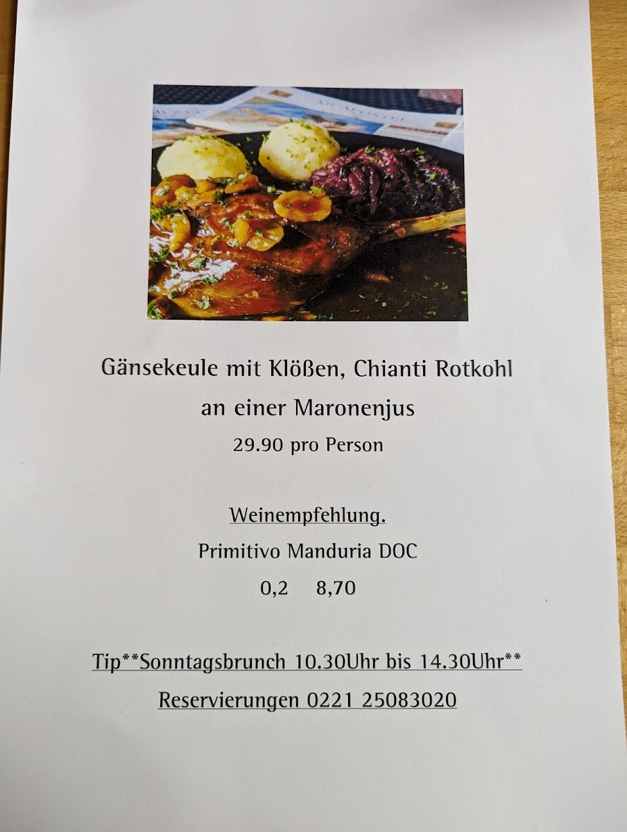 For dessert lovers, the options are equally tempting, featuring traditional treats like Tiramisù (€6.90) and Crème Brûlée (€6.90). The unique presentation of their menu, styled like a newspaper, adds an interesting touch to your dining experience. It’s a perfect spot for both casual lunches and special dinners, enhanced by a vibrant atmosphere.